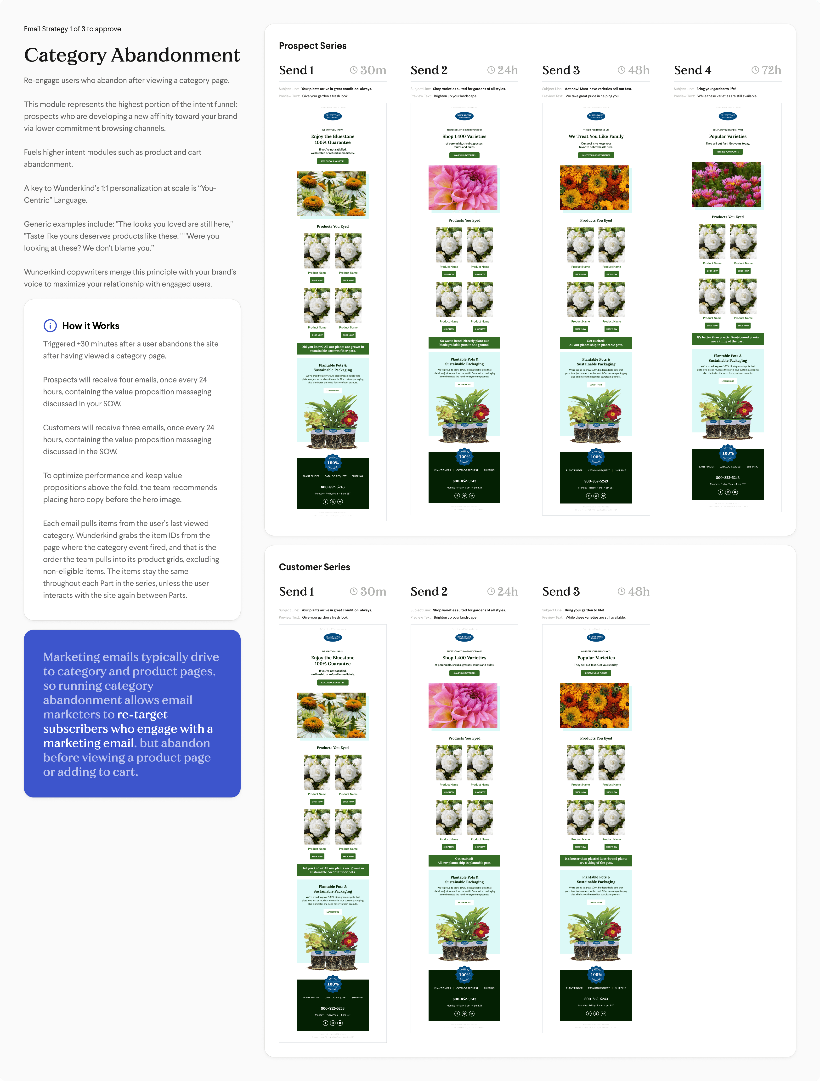 Designed with client's own assets and laid out for performance, these welcome abandonment emails drive revenue.
