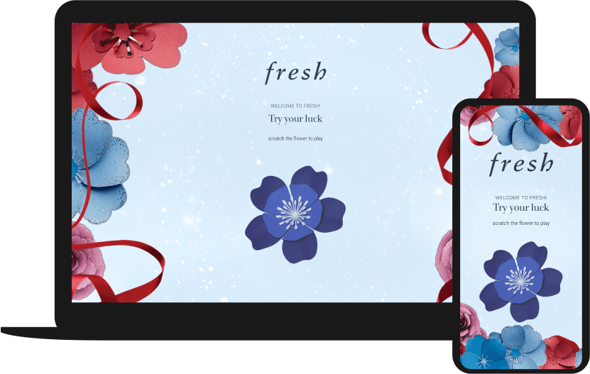 The user draggers their cursor over the metallic box to "scratch" away the surface to revel and a free gift offer.