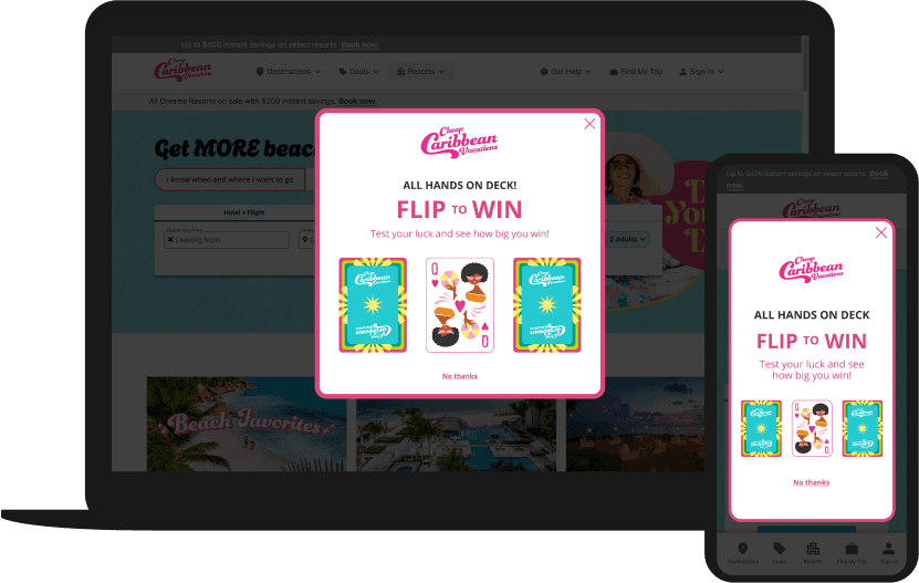 Users select one of three cards to flip over. Once flipped an incentive to purchase is revealed on the opposite side.