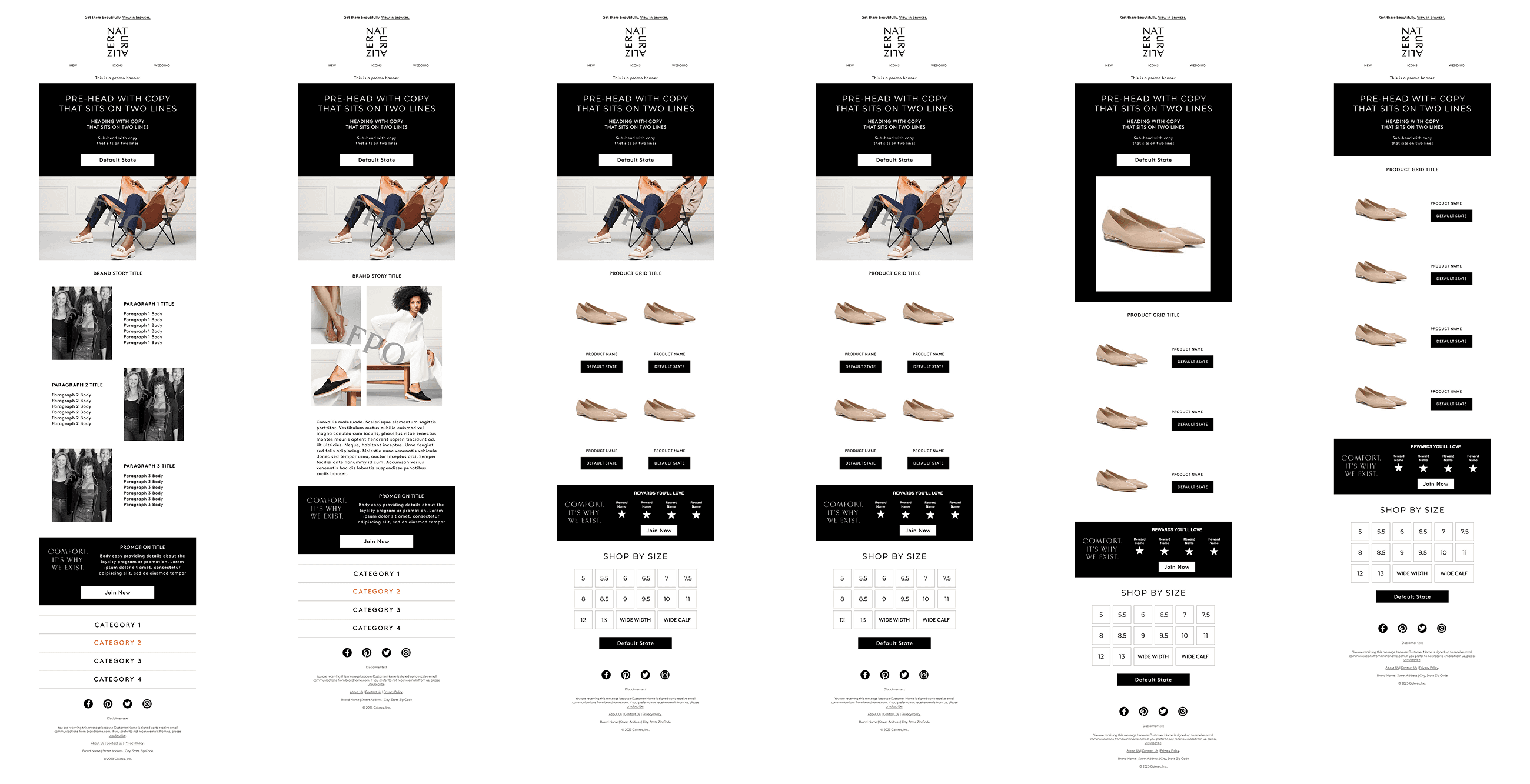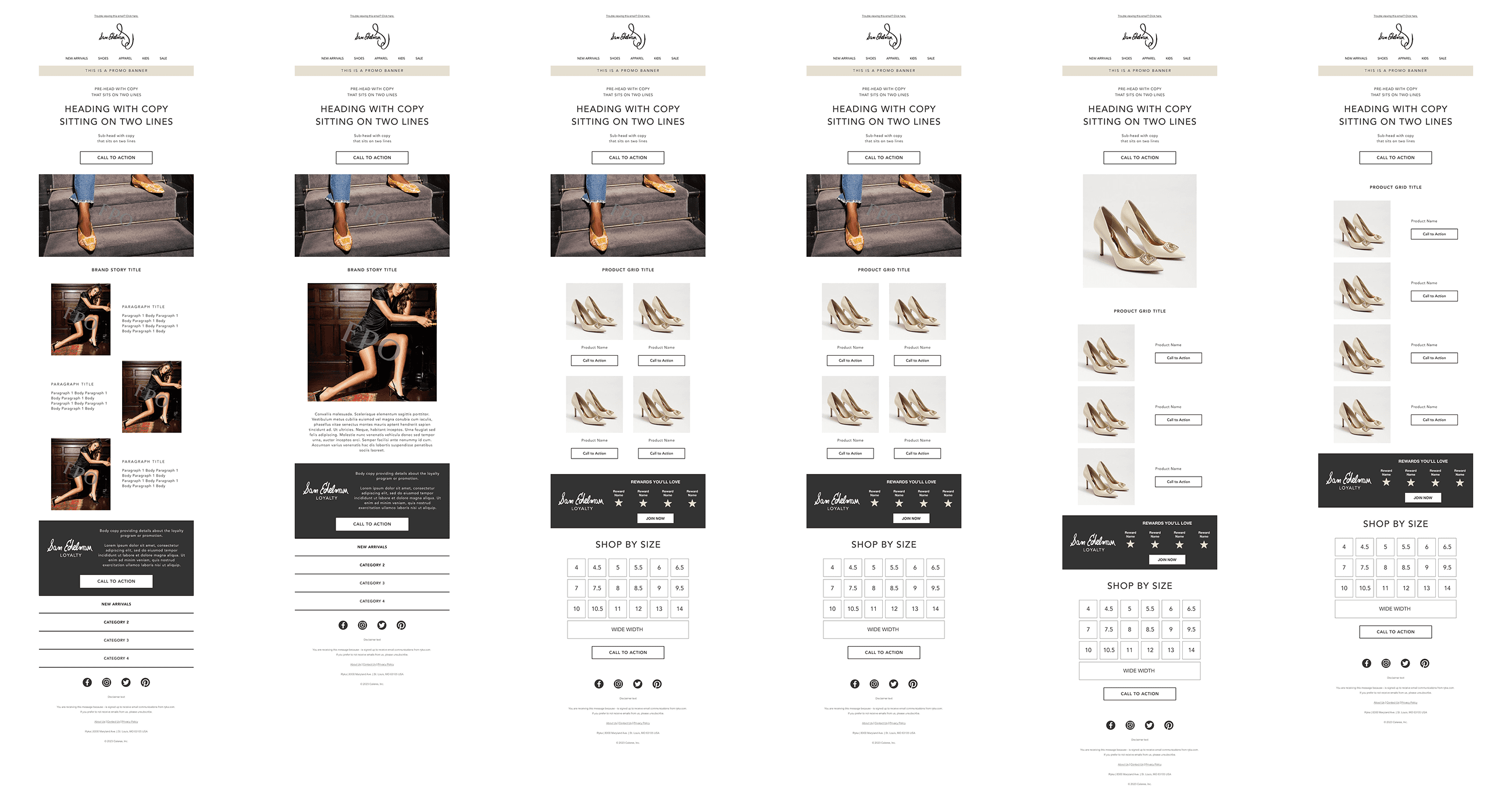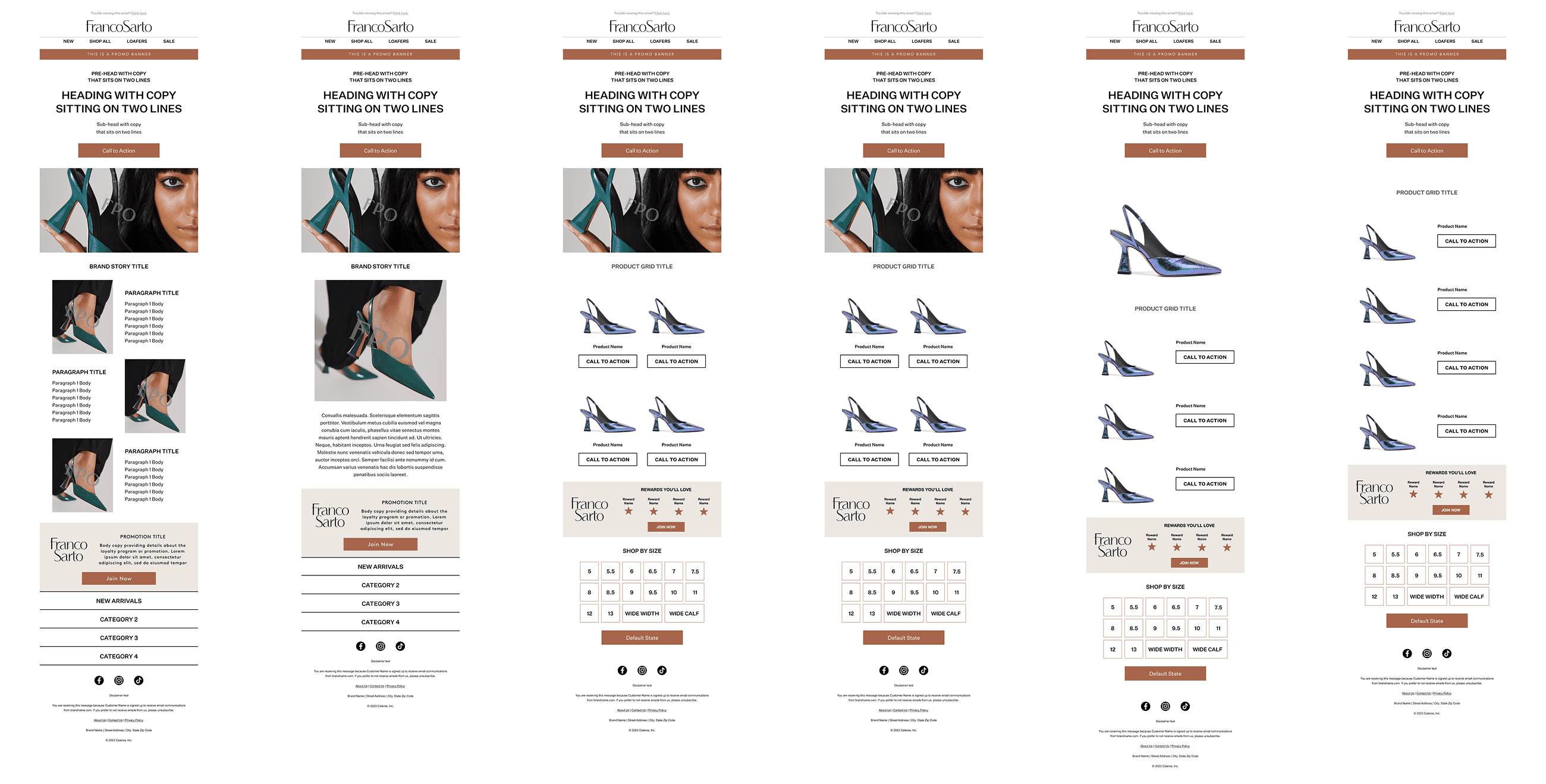 This project involved a comprehensive redesign of emails across Caleres' brand portfolio. The deliverables included eight distinct email types per brand (72 total emails):