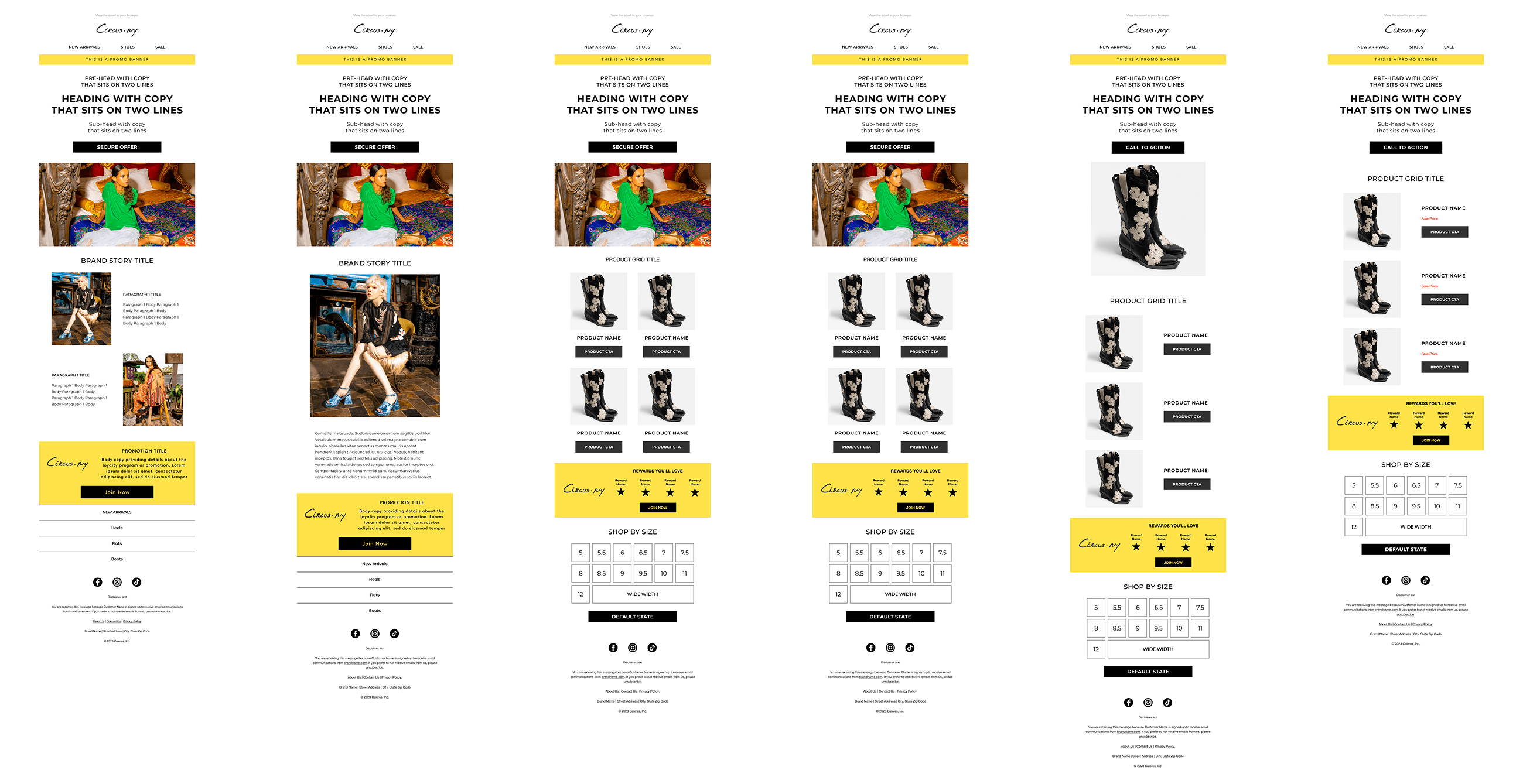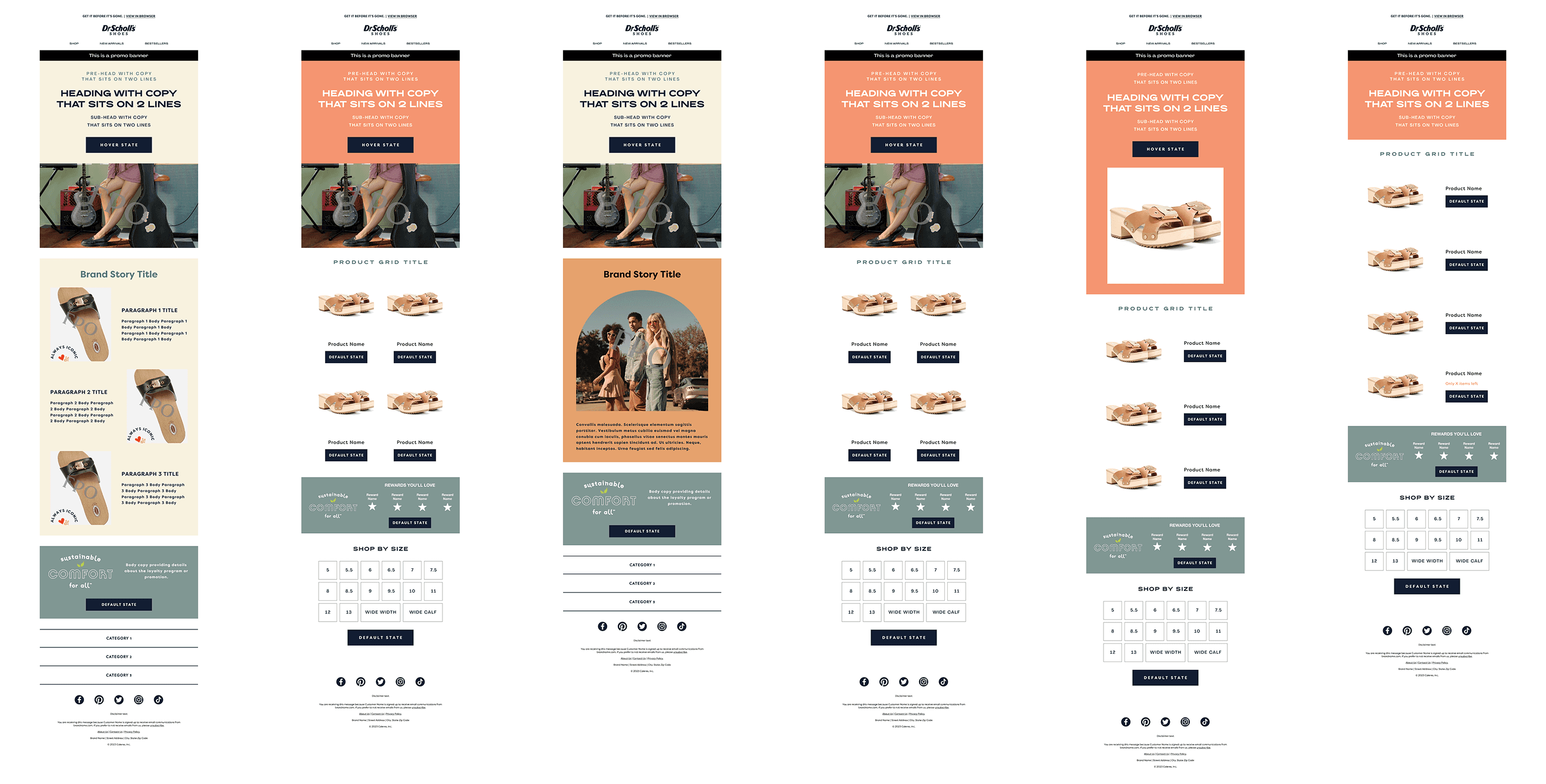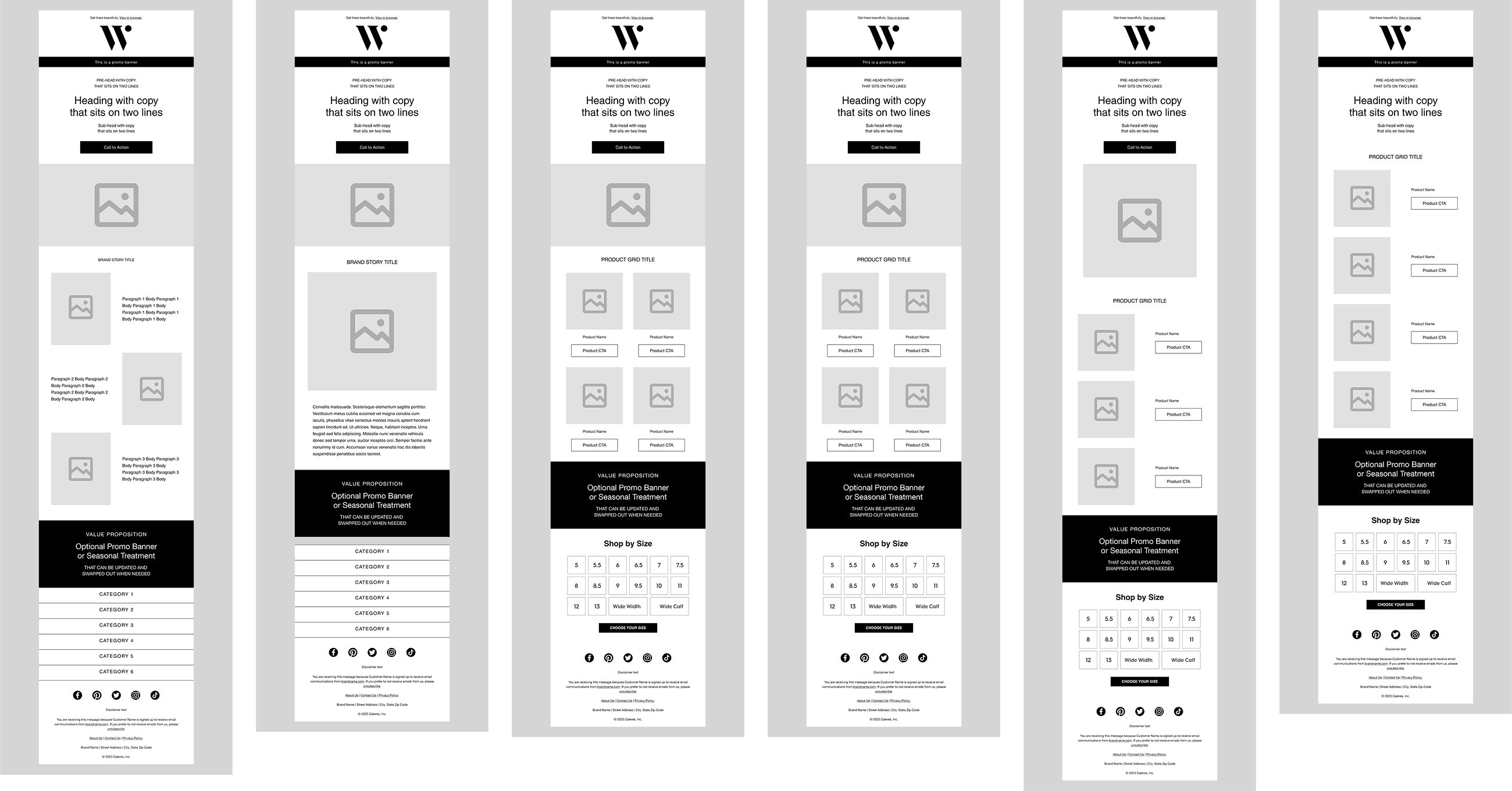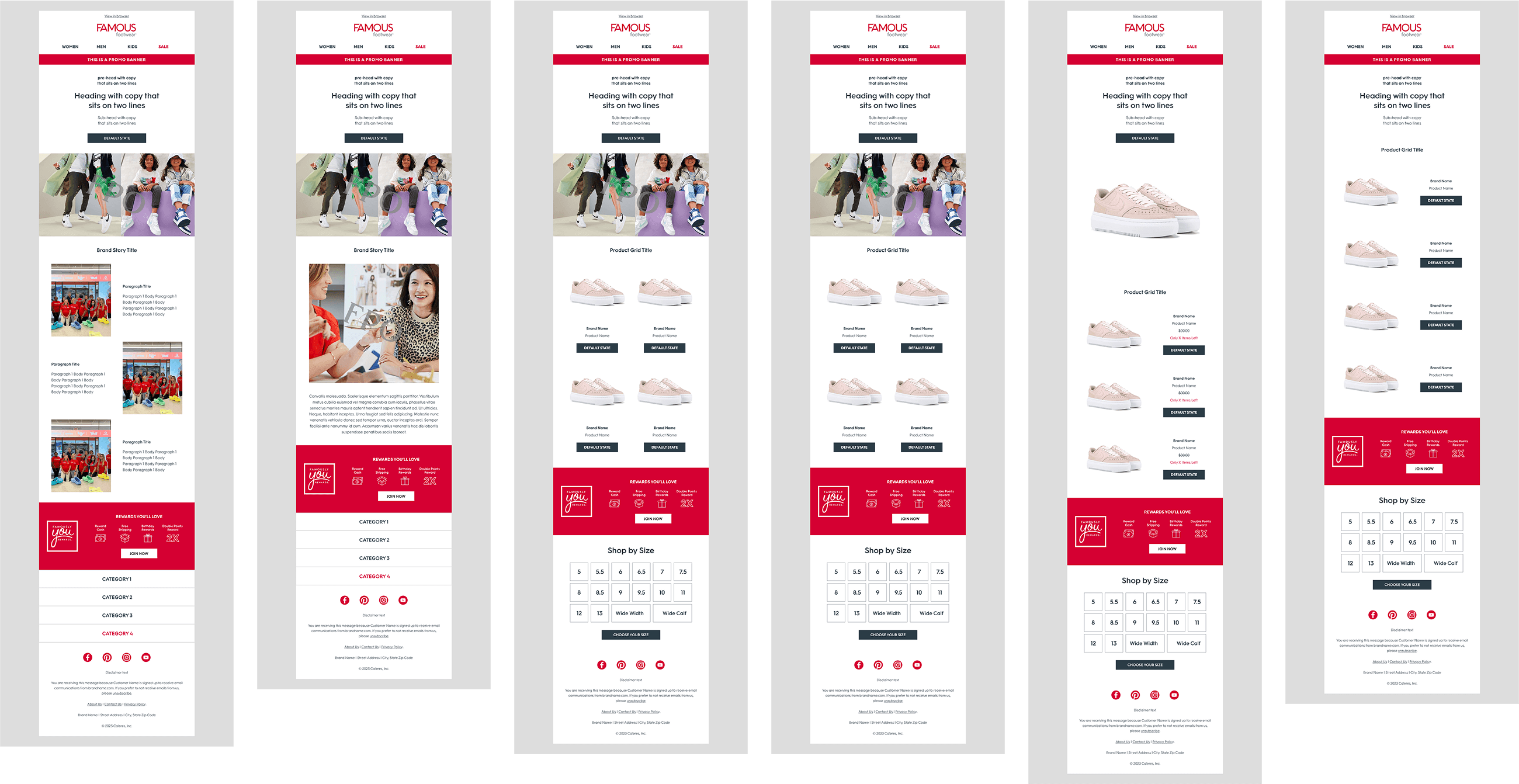 This project involved a comprehensive redesign of emails across Caleres' brand portfolio. The deliverables included eight distinct email types per brand (72 total emails):
