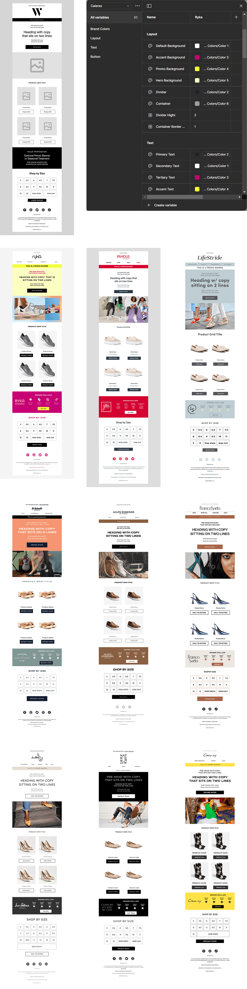 While Caleres ultimately chose not to renew their contract, the project served as a successful proof of concept for enhanced email functionality and demonstrated advanced proficiency with Figma's new Variables Library system. The work established a new standard for multi-brand template management and introduced innovative shopping features that could be applied to future client engagements.