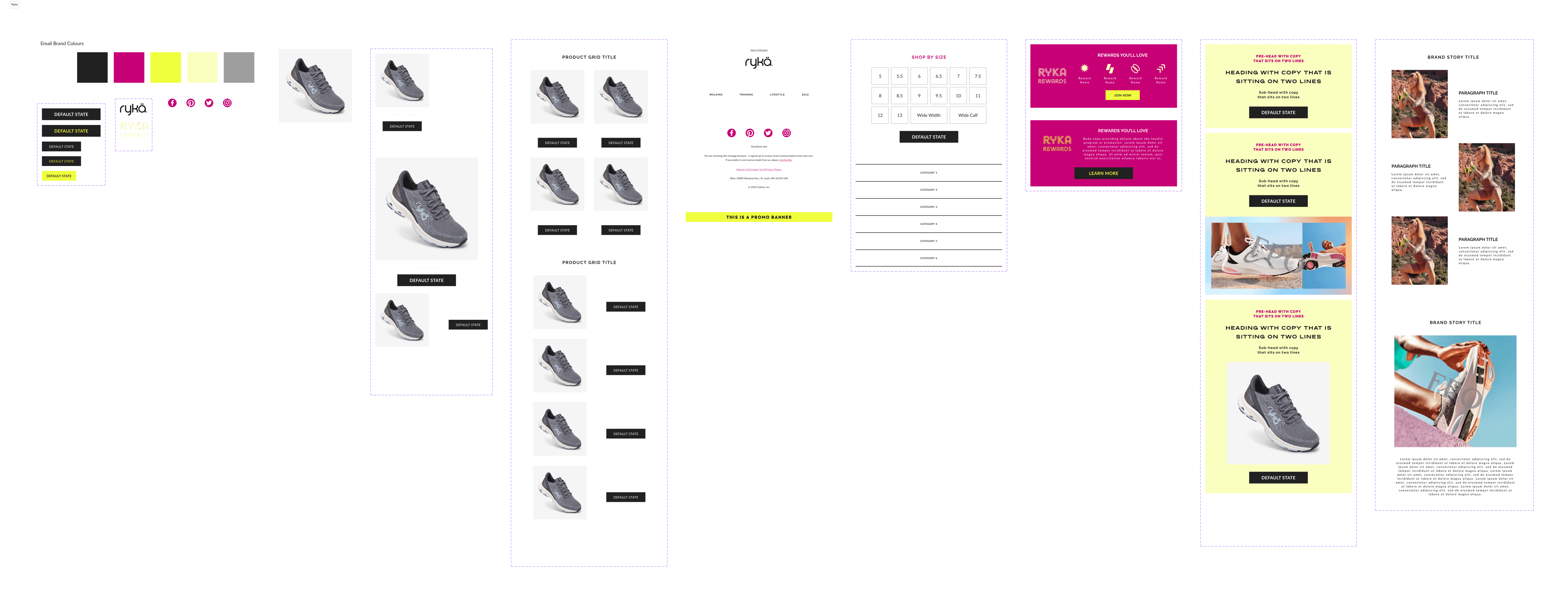 For each of the nine brands under the Caleres umbrella, I created components for each of the email sections. This included CTA buttons, icons, product cards, and entire section blocks.