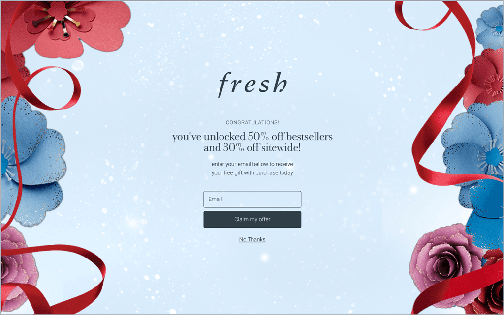The customer will be prompted to enter their email address to receive their free gift with purchase.