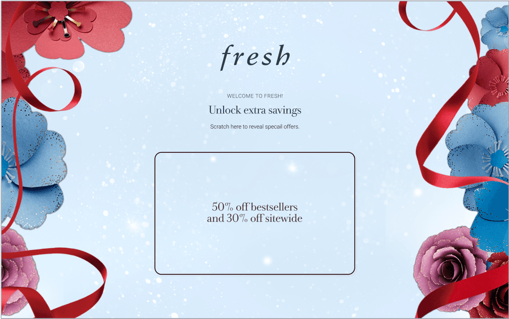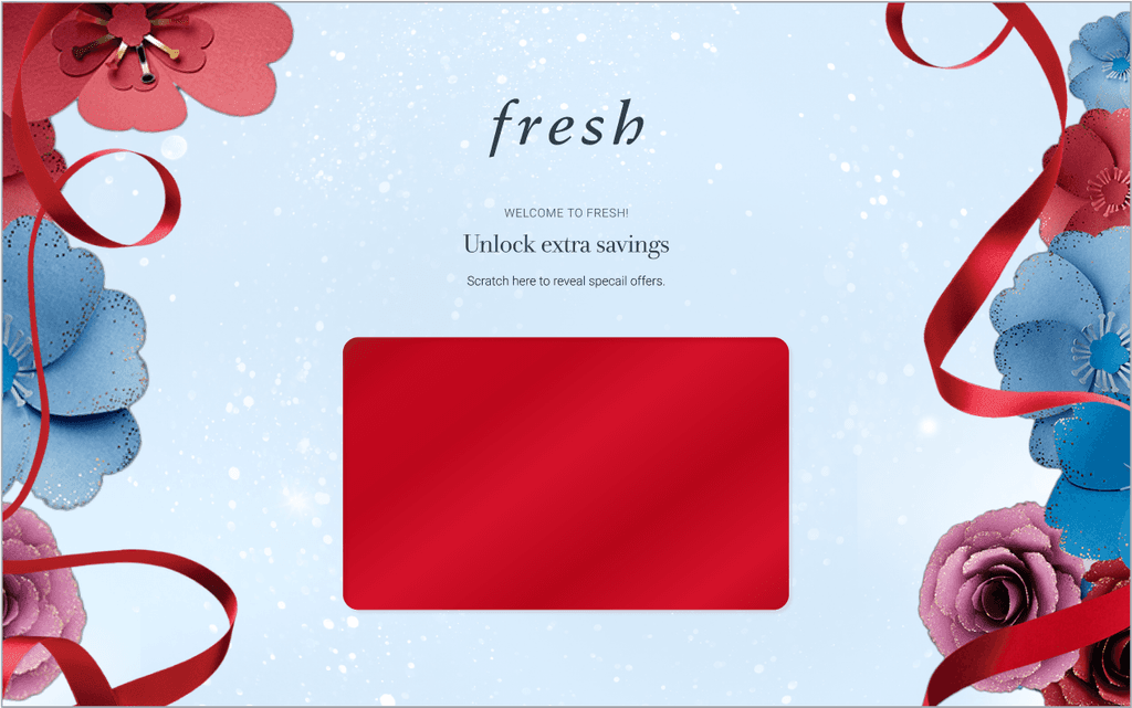 By implementing design game-play such as scratch-offs into an existing system, we can target user intrinsic motivations so that they enjoy using it more. Inspired by the in store displays for Holiday 2024, I used the floral and ribbon assets provided by the client to create a game for the client's customers to win free gits and discounts. 50% of users will receive one of two free gifts to be added to their carts at checkout. The other 50% will win a discount on the contents of their cart.
